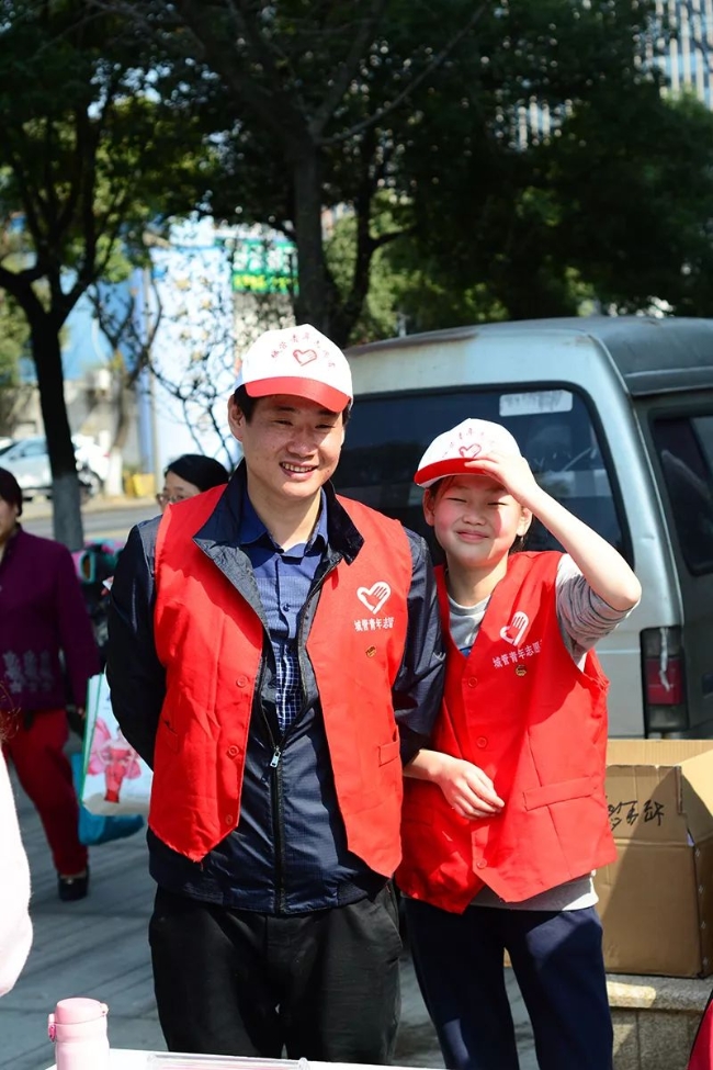 (胡杰不僅自己經(jīng)常參加公益活動(dòng),在他的影響下,女兒也加入到義工服務(wù)中。)
